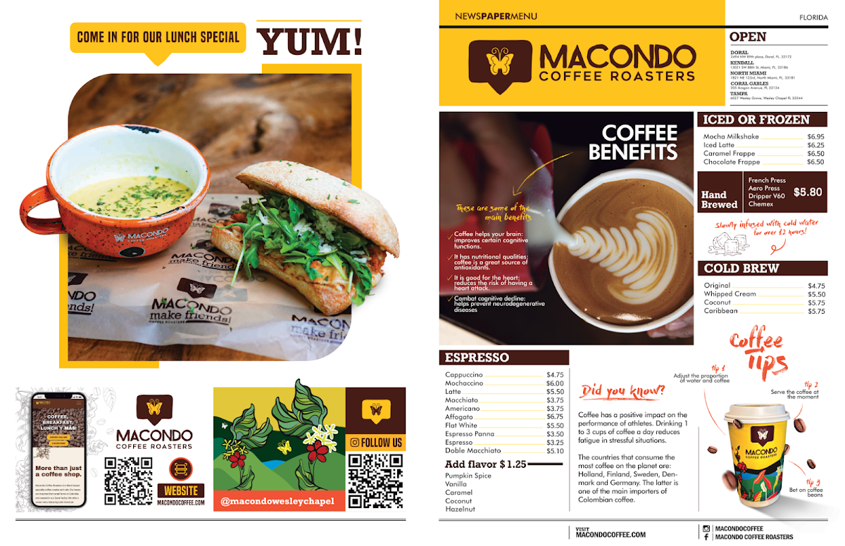 Espresso-based moccaccino with options of served cold or hot.